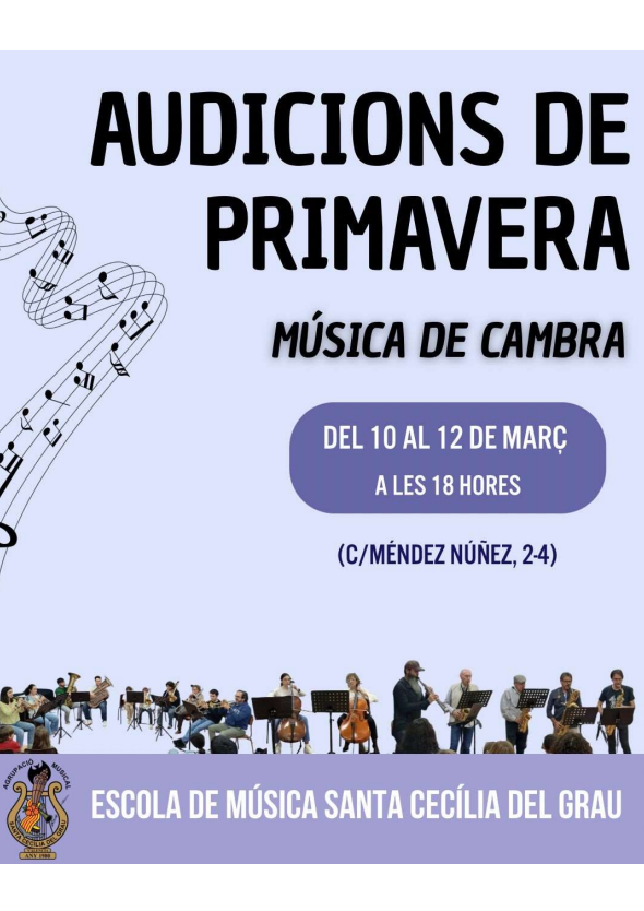Desde esta misma tarde hasta el miércoles 12 te esperamos en nuestra escuela de música para disfrutar de las actuaciones de nuestro alumnado en las audiciones de las diferentes aulas de instrumentos.